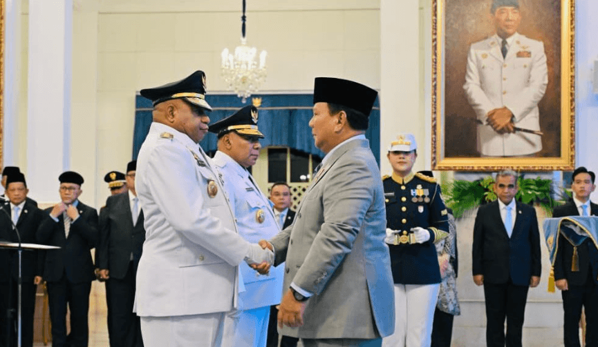 ISTANAGARUDA.COM – Suasana penuh khidmat menyelimuti Istana Negara, Jakarta, saat Presiden Prabowo Subianto secara resmi melantik Matius Fakhiri dan Aryoko Alberto Ferdinand Rumaropen sebagai Gubernur dan Wakil Gubernur Papua periode 2025–2030, pada Rabu, 8 Oktober 2025.