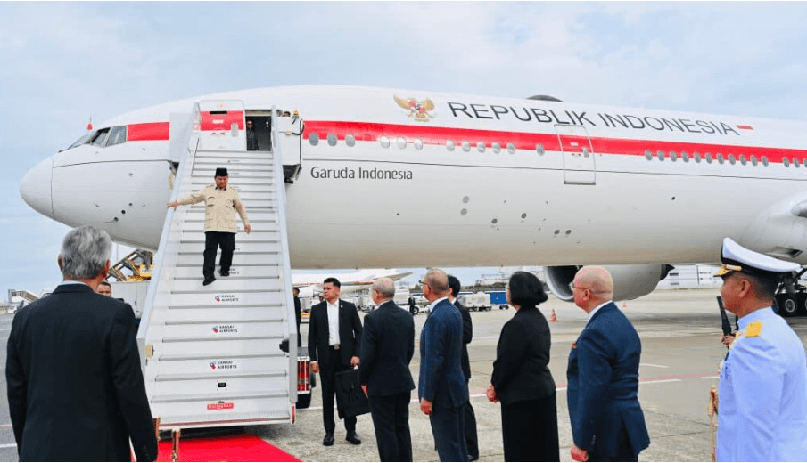 Presiden Republik Indonesia, Prabowo Subianto tiba Bandar Udara Internasional Kansai di Osaka, Jepang pada Sabtu, 20 September 2025.(Presidenri)