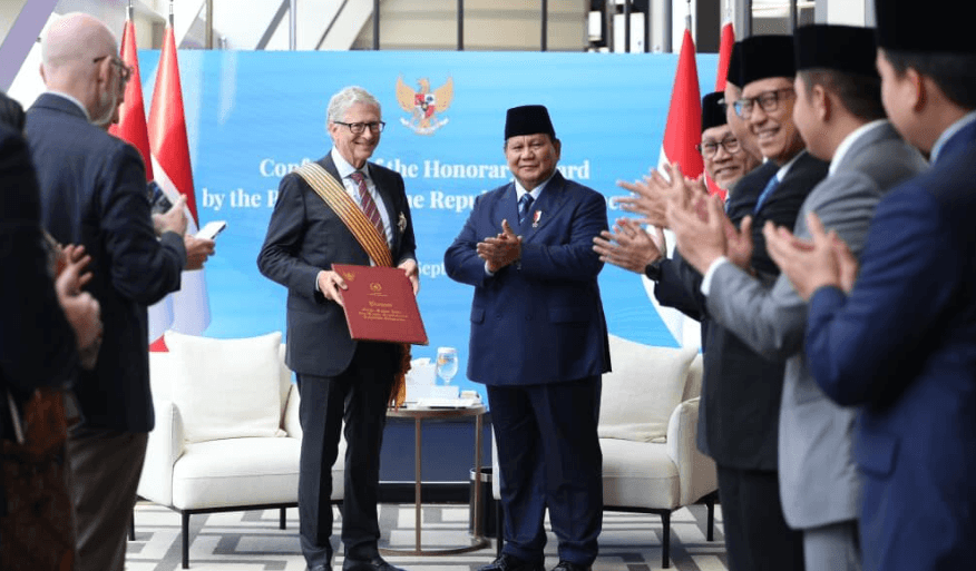 Sebagai bentuk penghargaan, Presiden Prabowo menganugerahkan Order of Distinguished Stars – Bintang Jasa Utama kepada William Henry Gates III.