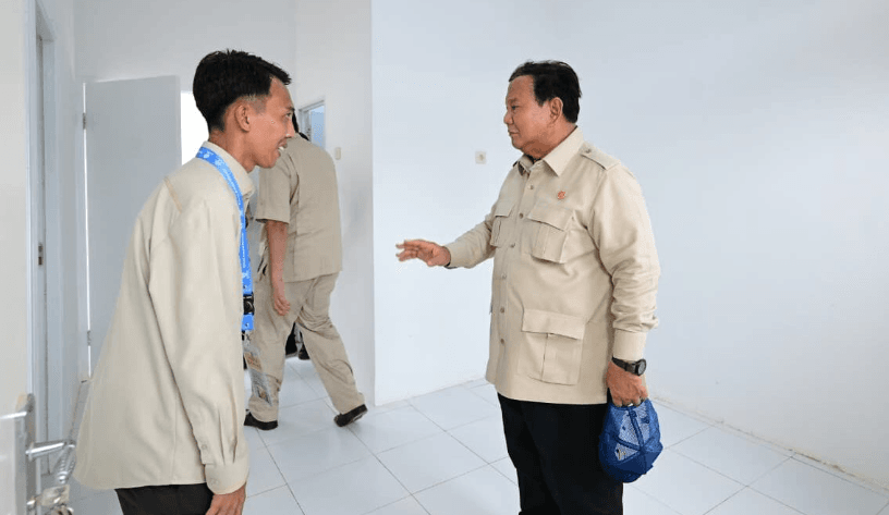 Momen mengharukan tercipta ketika Clara, pelajar sekaligus penerima manfaat rumah subsidi dan program Makan Bergizi Gratis (MBG), memberikan bunga langsung kepada Presiden sebelum beliau meninjau rumah contoh di kawasan tersebut.