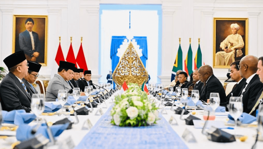 ISTANAGARUDA.COM – Dalam suasana penuh keakraban, Presiden Republik Indonesia Prabowo Subianto menjamu Presiden Republik Afrika Selatan Matamela Cyril Ramaphosa dalam pertemuan bilateral yang dikemas dalam format working lunch di Istana Merdeka, Jakarta, pada Rabu, 22 Oktober 2025.