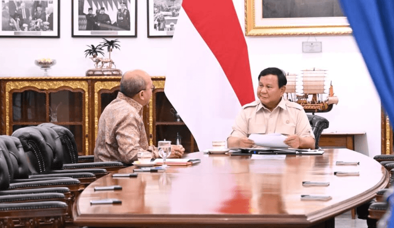 Presiden Prabowo Subianto menerima laporan perkembangan rencana pembangunan Kampung Haji Indonesia di Makkah dari Menteri Investasi/Kepala BKPM yang juga Kepala Badan Pengelola Investasi (BPI) Danantara, Rosan Roeslani, di Istana Merdeka, Jakarta, pada Rabu, 17 Desember 2025.(Presidenri)