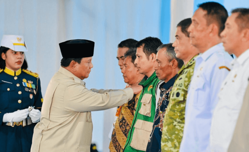 Setelah itu, Presiden Prabowo menyematkan tanda kehormatan kepada para penerima sebagai simbol penghargaan negara atas dedikasi, loyalitas, dan kontribusi mereka dalam memperkuat ketahanan pangan nasional.