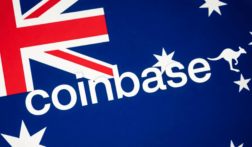 Ilustasi Coinbase dengan latar bendera Australia.(gr)